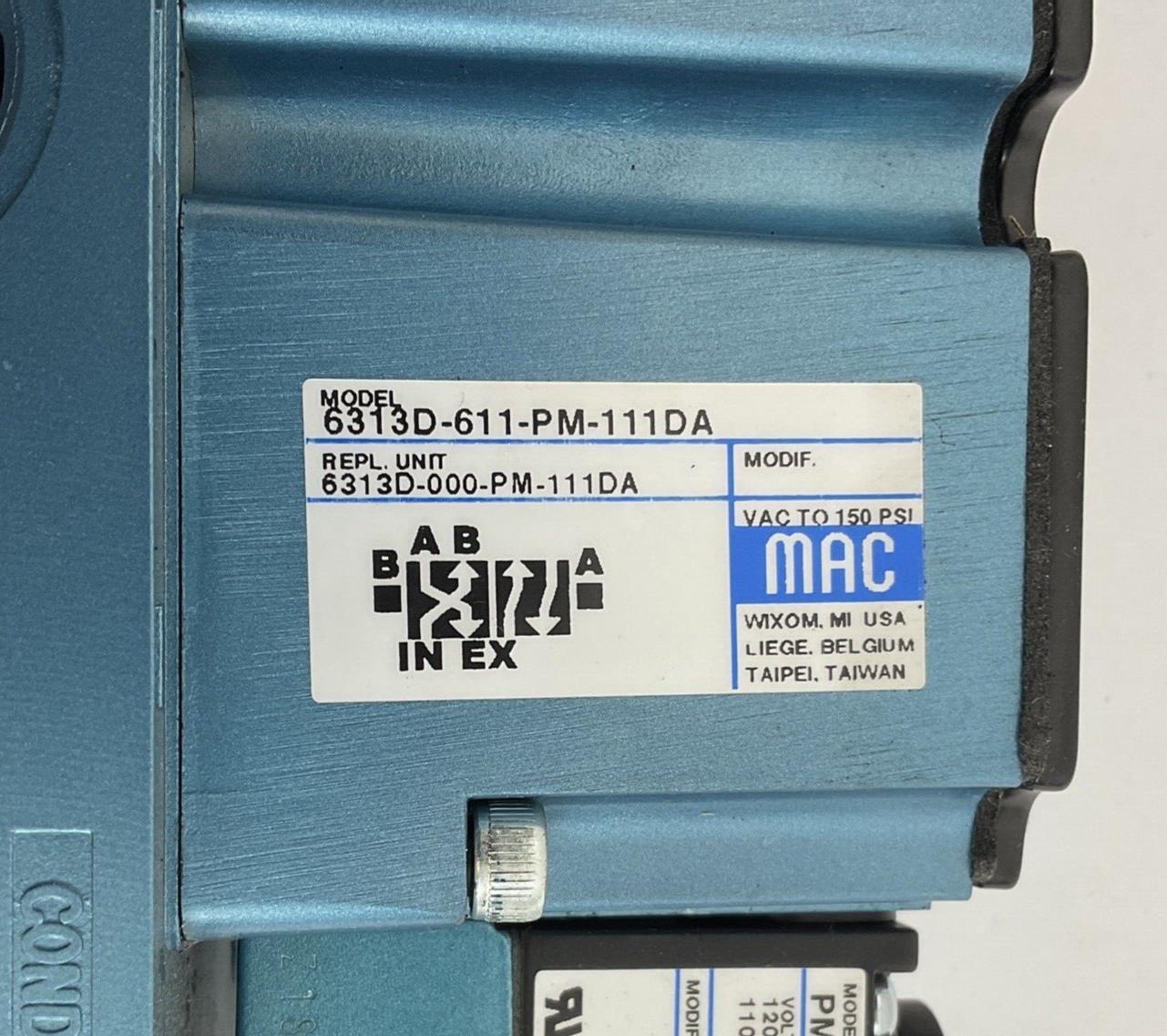 MAC 6313D-611-PM-111DA SOLENOID VALVE 110/120V 50/60HZ 25-150PSI
