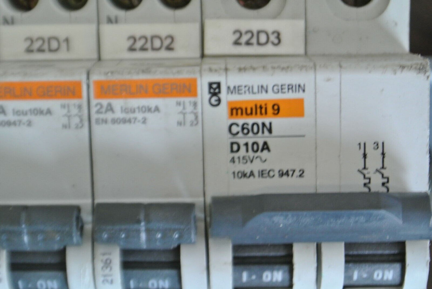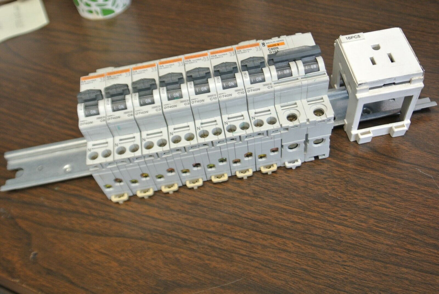 MERLIN GERIN C60N D10A + DT40N C2, C3, C6, C10 CIRCUIT BREAKERS on RAIL