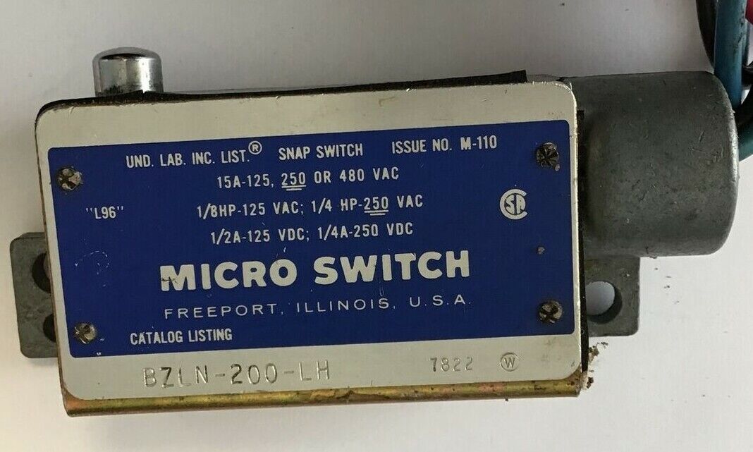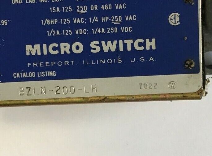 MICRO SWITCH BZLN-200-LH SNAP SWITCH 250-480VAC 15A 250VDC