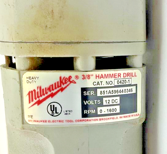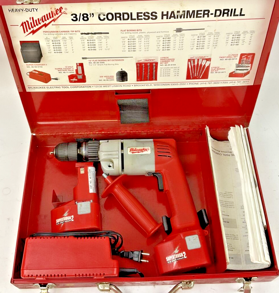 MILWAUKEE 0420-01 3/8" HAMMER DRILL 12VDC 2XBATTERY CHARGER HANDLE CASE 1600RPM