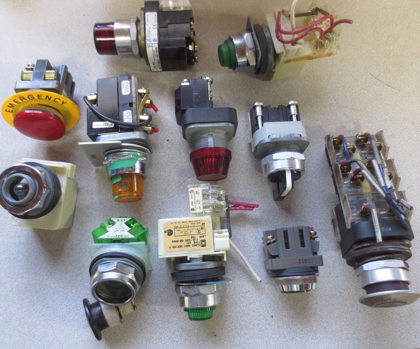 MIXED LOT of PUSH BUTTONS, SWITCHES for MACHINE CONTROLS - LOT of 11