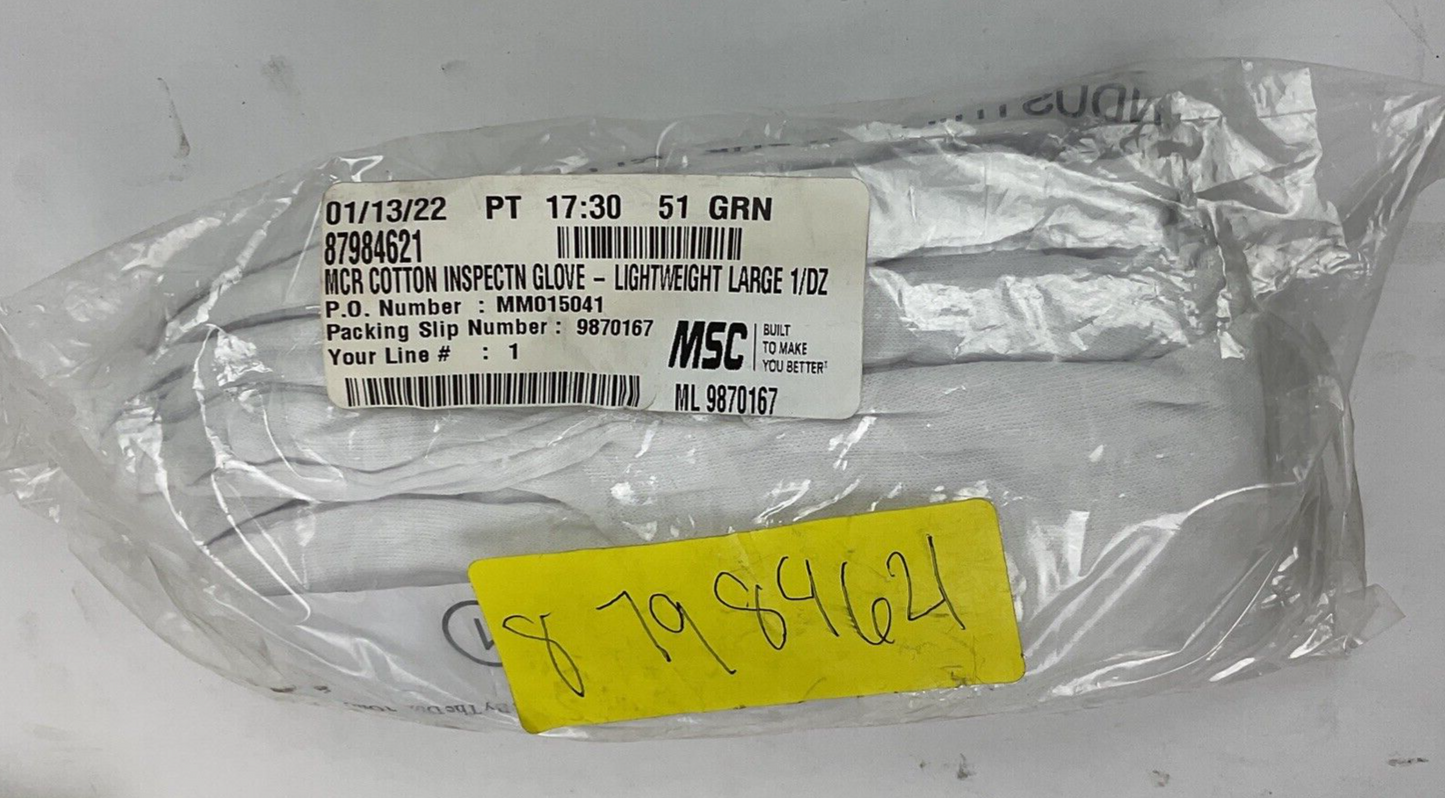MSC WHITE COTTON INSPECTION GLOVES. PACKS OF 12 ***LOTOF7***