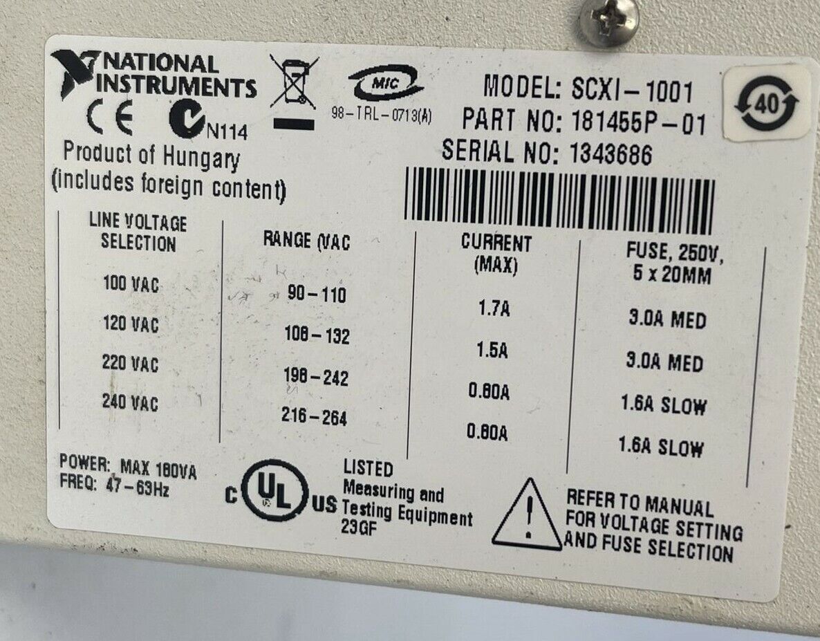 NATIONAL INSTRUMENTS SCXI-1001 12 SLOT CHASSIS 100/120/220/240VAC 1.7/1.5/0.80A