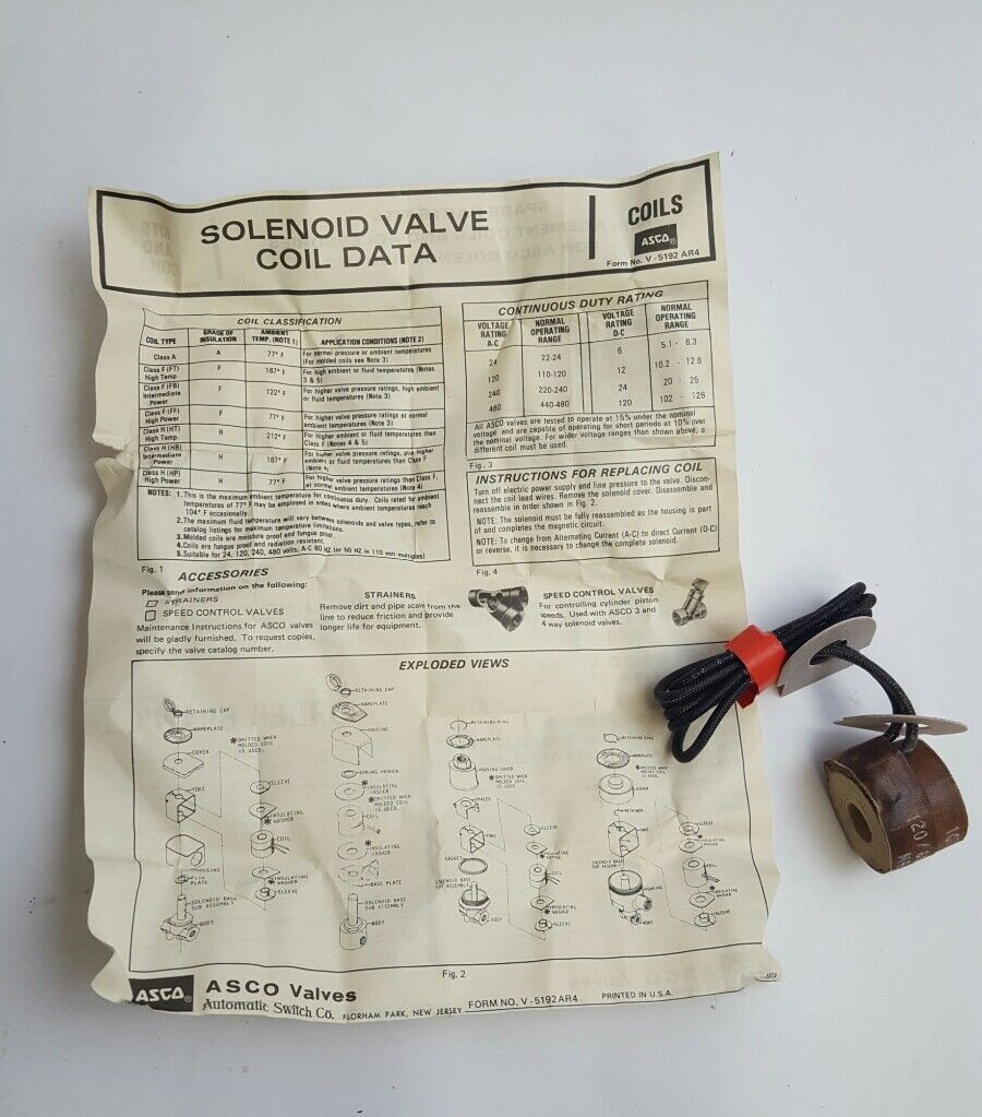 NEW ASCO 101-899-1-D SOLENOID VALVE COIL COIL 1018991D, VOLTS 120/60, 110/50HT