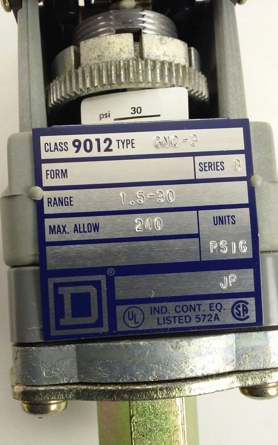 NEW SQUARE D 9012-GNO-3 PRESSURE SWITCH - Ser. B, Class 9012, Type GNO-3