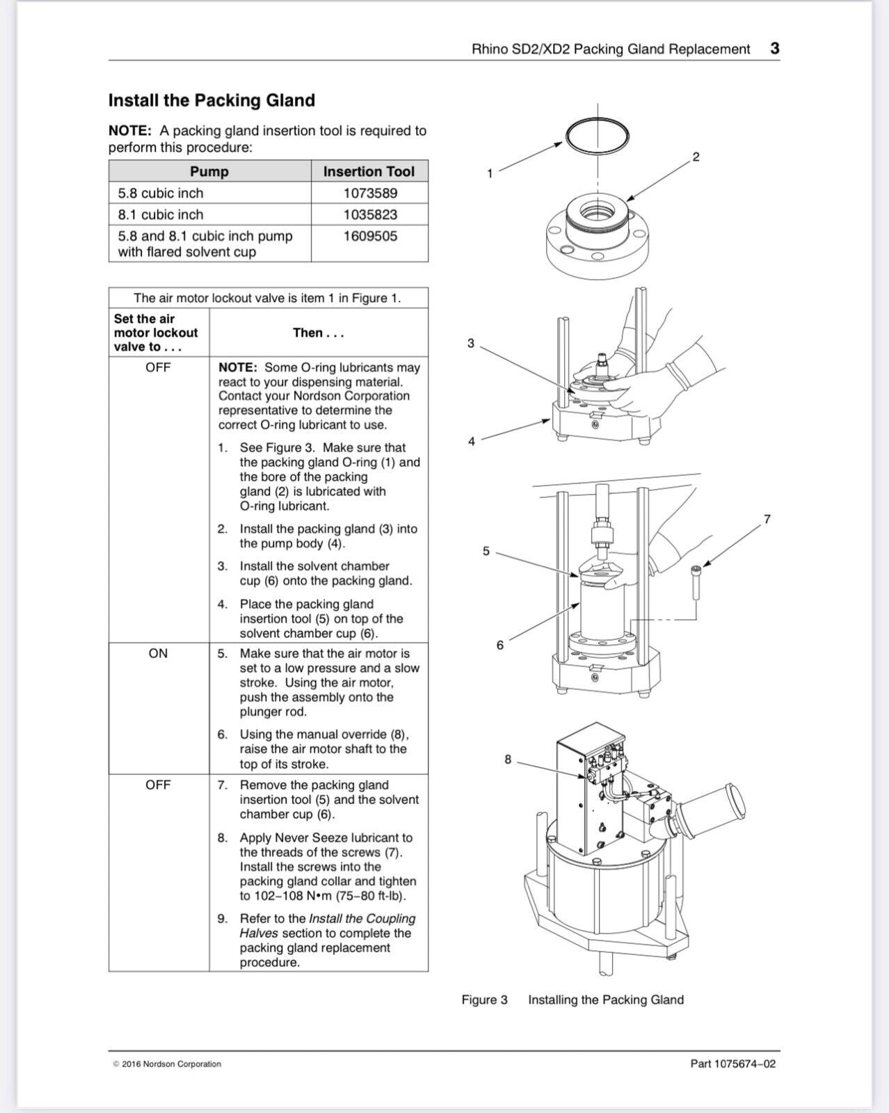 NORDSON - 1081134 - PACKING GLAND FOR RHINO SD2/XD2 - TWO EXTRA O RINGS - RARE