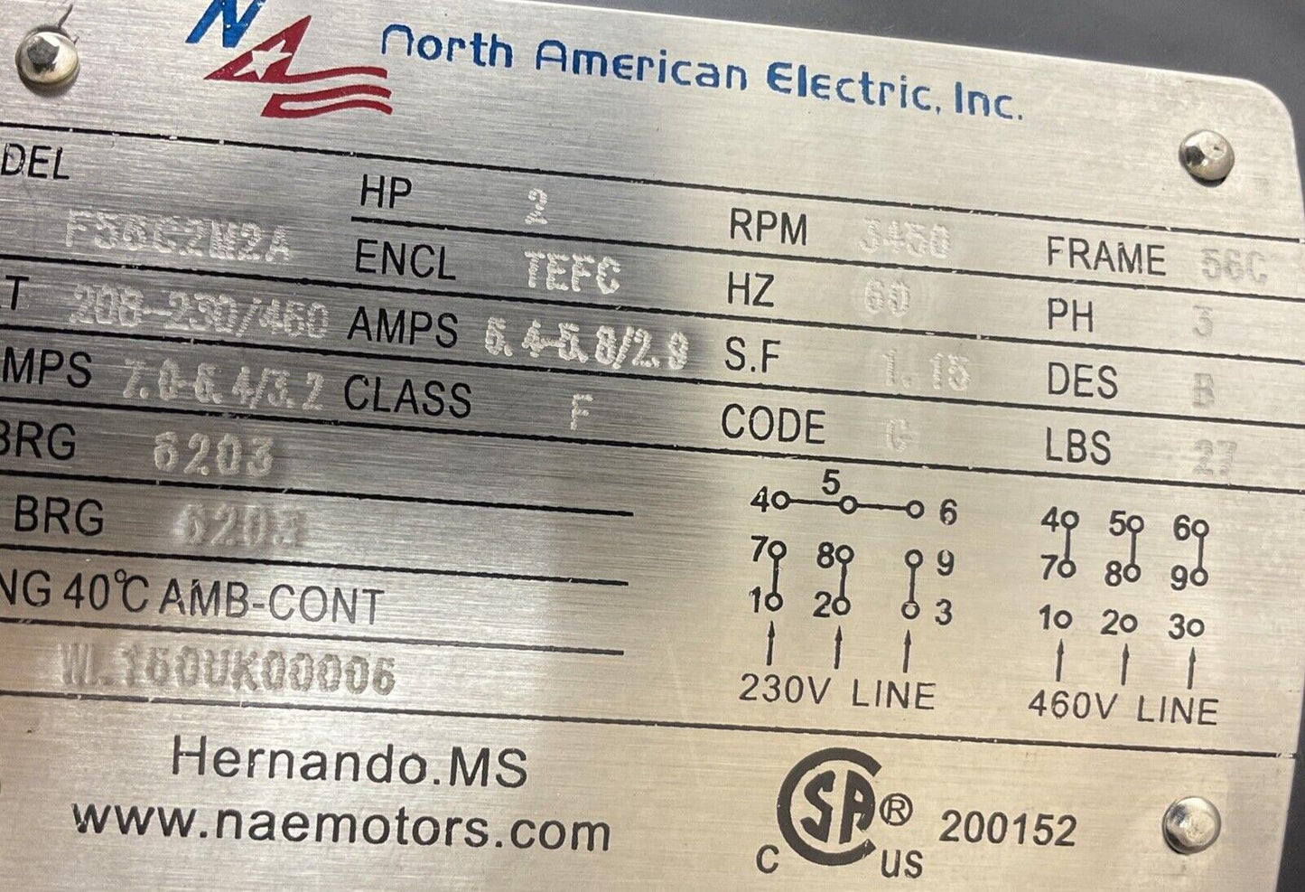 NORTH AMERICAN ELECTRIC F56C2M2A MOTOR 3450RPM 2HP 60HZ FRM.56C 460V