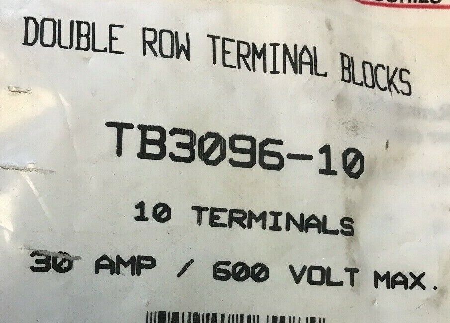 NSI DOUBLE ROW TERMINAL BLOCKS TB3096-10 10 TERMINALS 30AMP/600VOLT