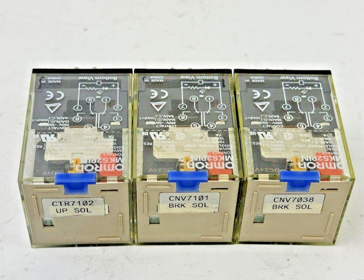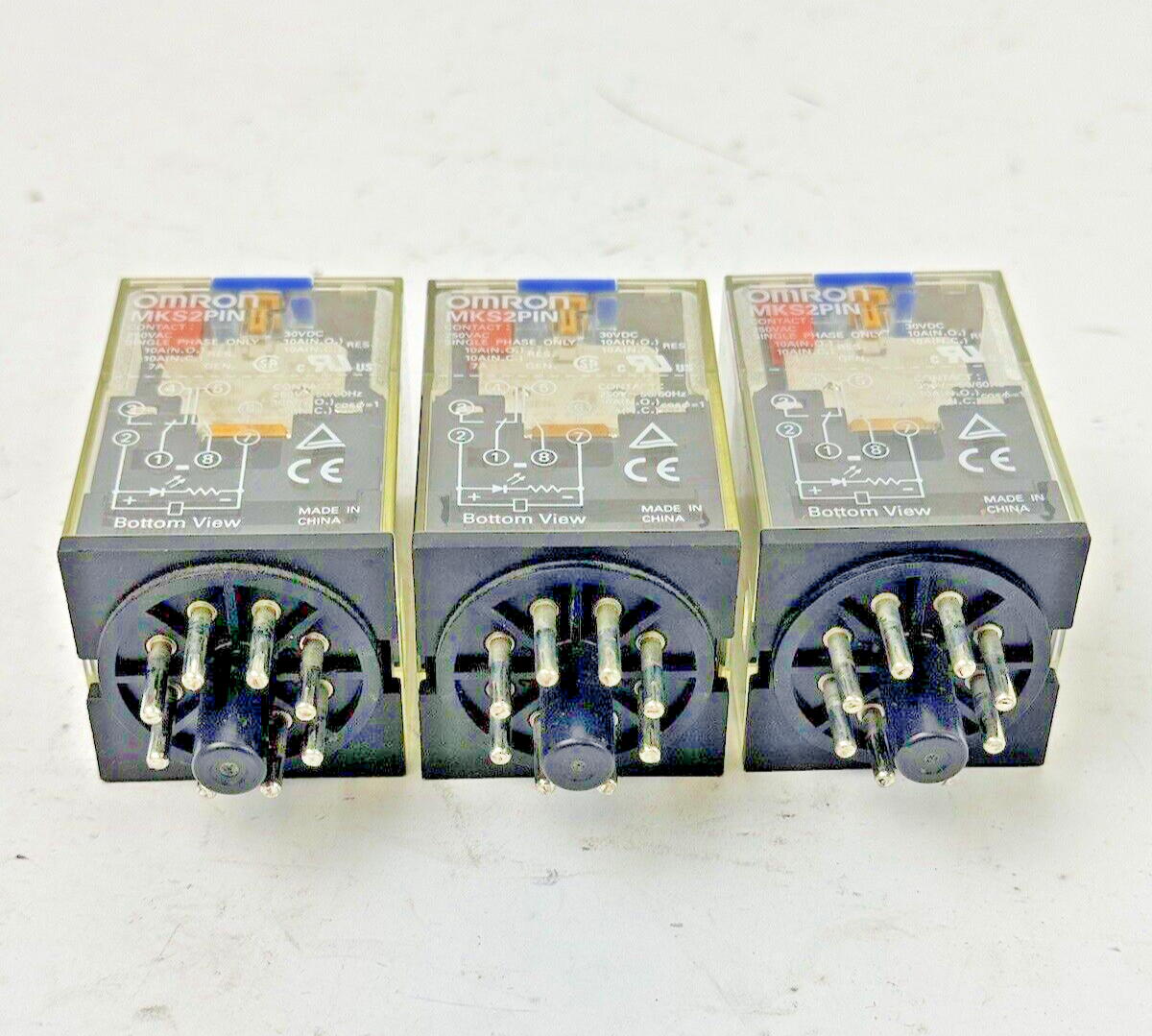 OMRON *LOT OF 3* - MKS2PIN - RELAY - 250VAC/ 30VDC, 10A RES. ,7A GEN. SINGLE PHS