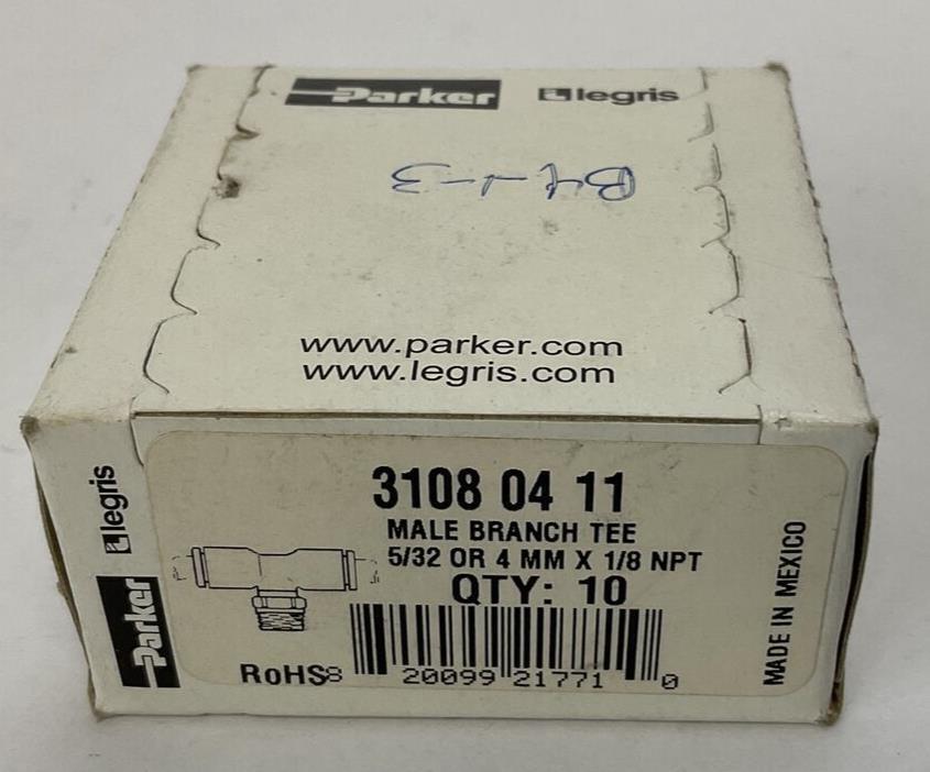 PARKER 3108 04 11 MALE BRANCH TEE 5/32 OR 4MM X 1/8 NPT (BOX OF 10)