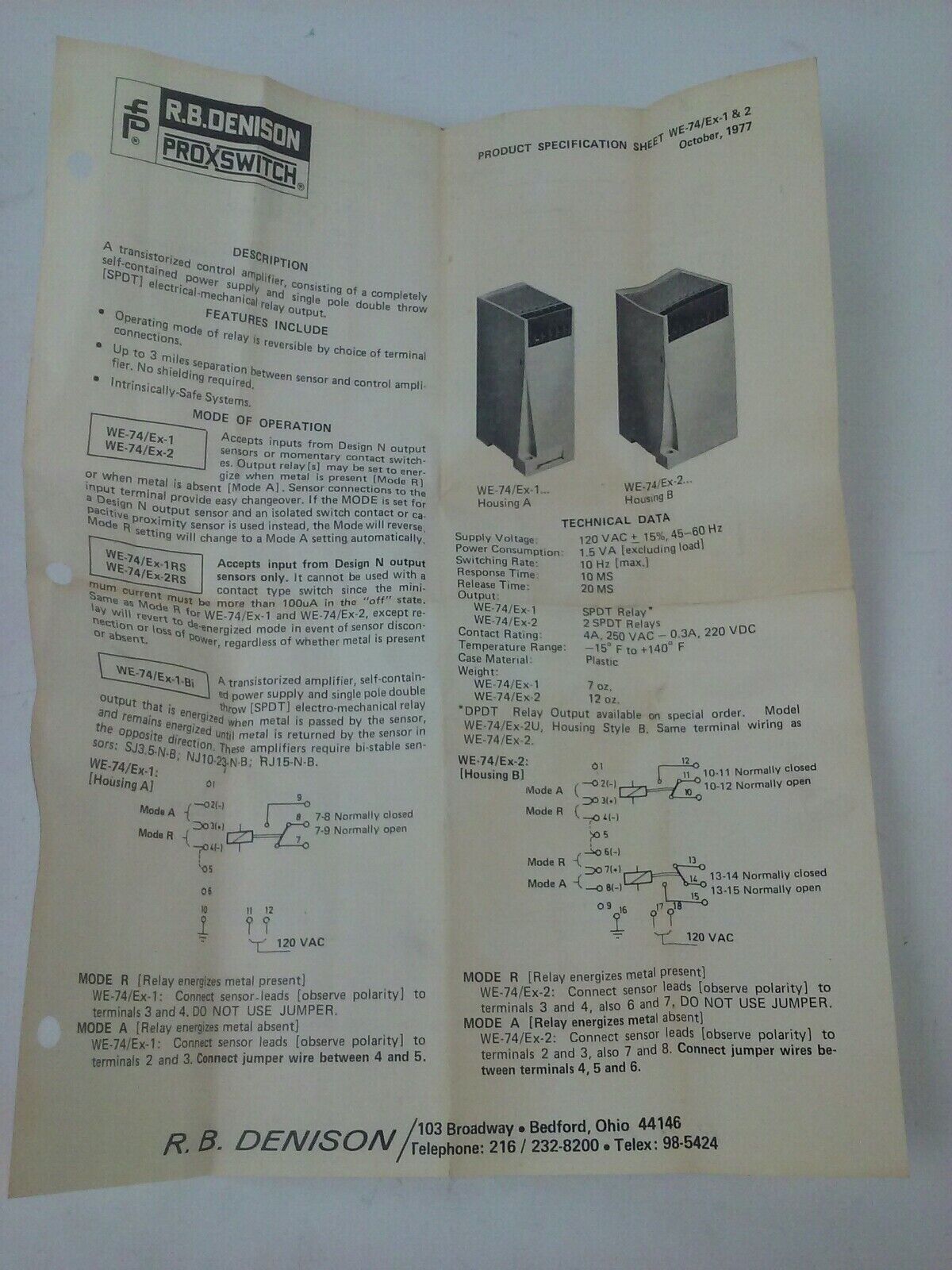 PEPPERL + FUCHS WE74/EX1 SWITCH AMPLIFIER R.B. DENISON PROXSWITCH 120V SUPPLY