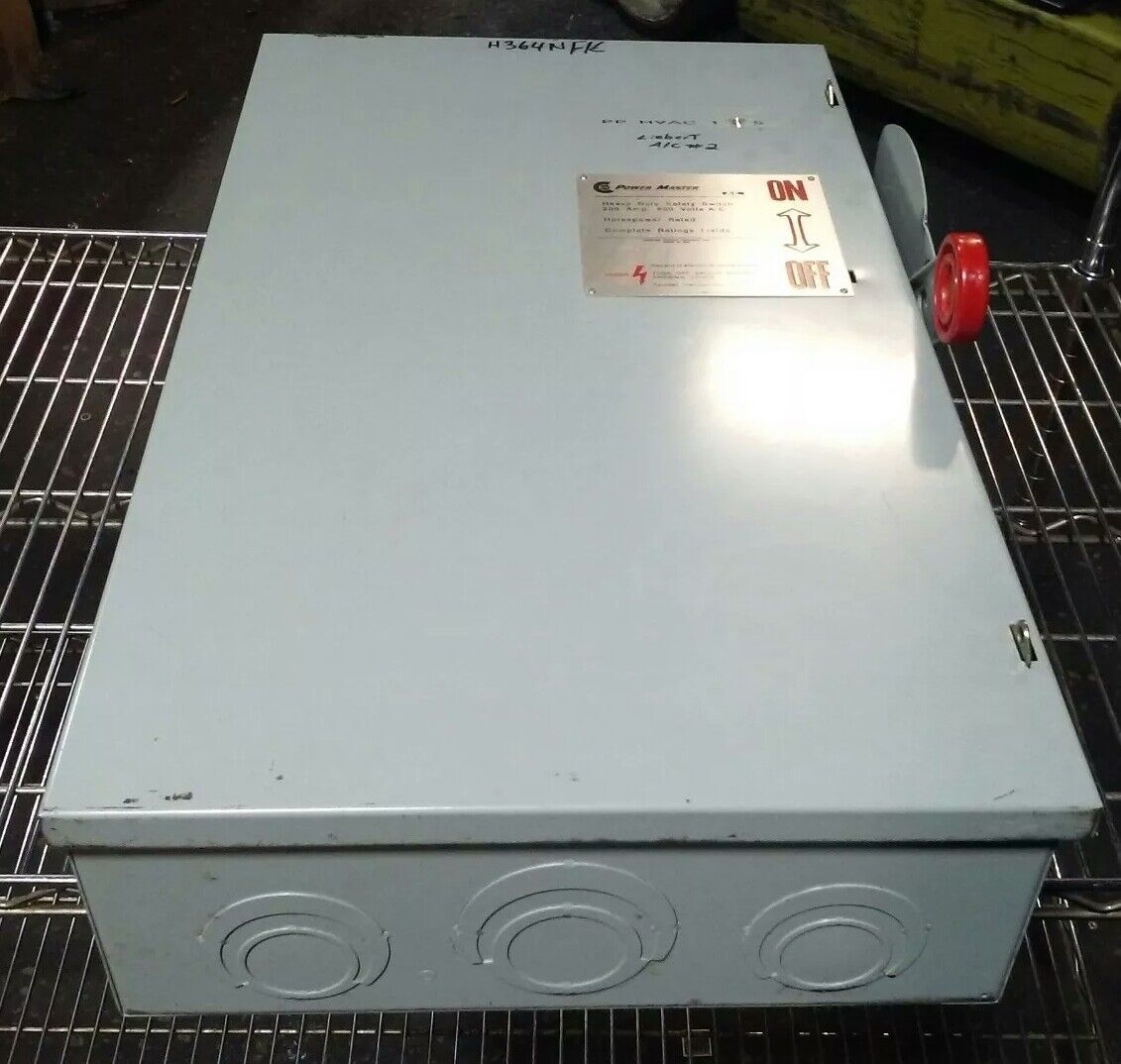 POWERMASTER EATON H364NFK, SAFETY SWITCH, 200A, 600V/250DC, 3P, 150 H.P., USED