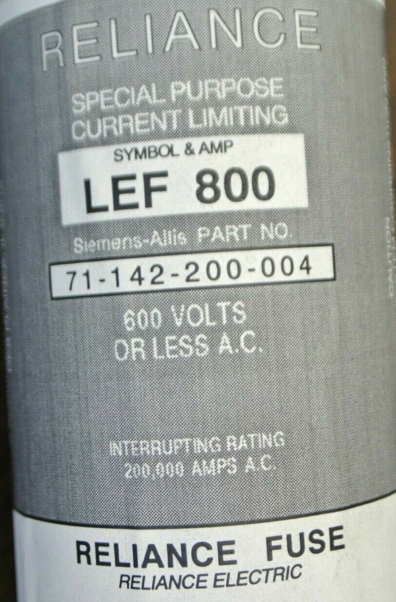 RELIANCE LEF800 CLASS L SPECIAL PURPOSE HI-CAP FUSE / 800A / 600V / NEW SURPLUS