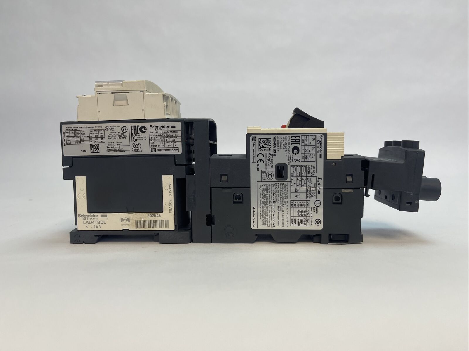 SCHNEIDER LC1 D09 BL CONTACTOR LAD4TBDL 24V GV2ME10 MANUAL MOTOR STARTER GV1G09