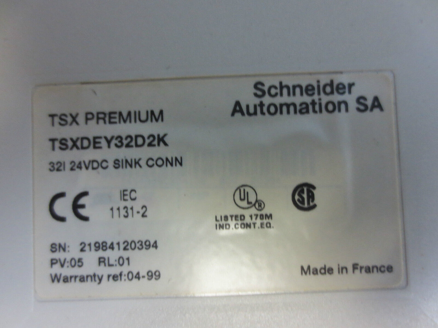 SCHNEIDER AUTOMATION TSX PREMIUM - 32I 24VDC SINK CONN