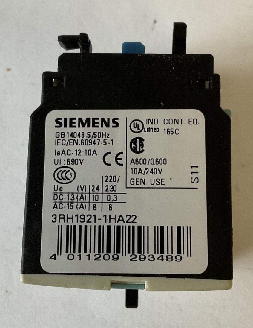 SIEMENS 3RH1921-1HA22 CONTACT BLOCK 10A 240V****LOTOF2****