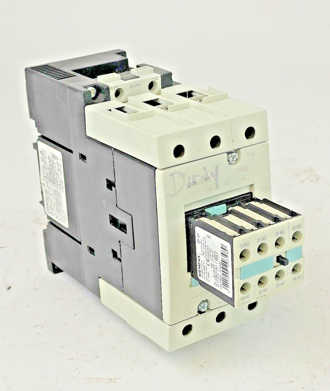 SIEMENS - 3RT1045-1BB40 CONTACTOR WITH 24V DC COIL & 3RH1921-1HA22 CONTACT BLOCK
