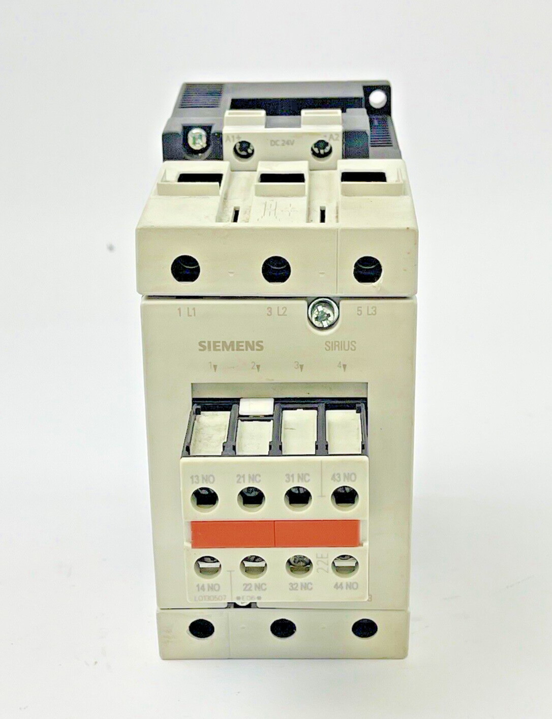 SIEMENS - 3RT1045-1BB44-3MA0 - CONTACTOR W/ 24 VDC COIL & 3RH1921-1HA22-3AA1 AUX. CONTACT