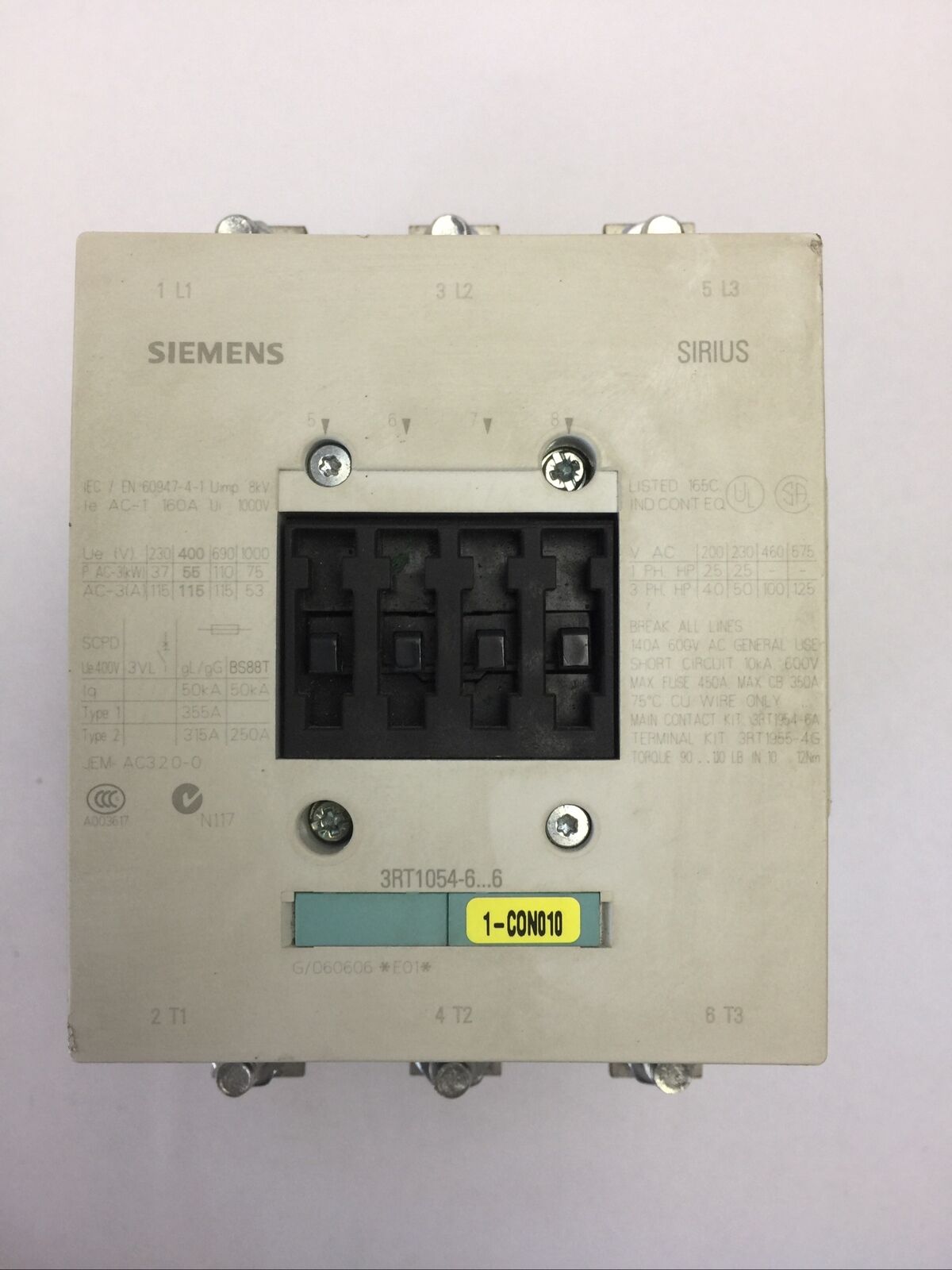 SIEMENS 3RT1054-6AF36 CONTACTOR 140A 600VAC 3PH 125HP COIL 110-127VDC 50/60HZ