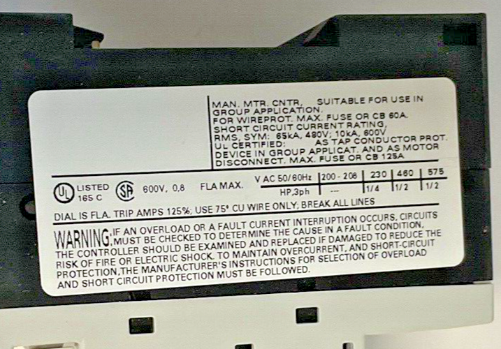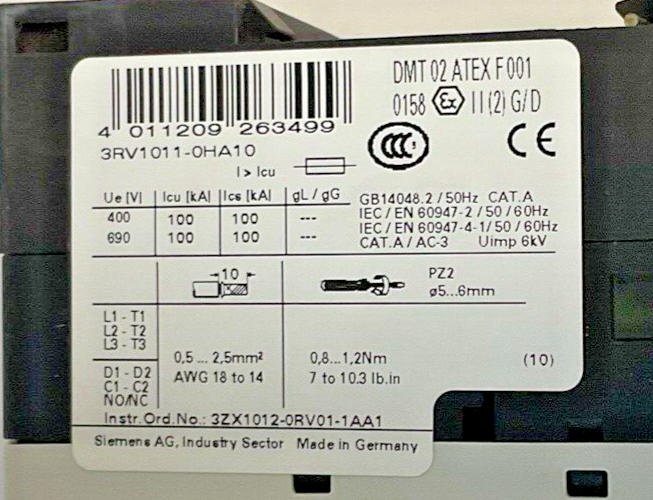 SIEMENS 3RV1011-0HA10 COMBINATION MOTOR CONTROL 0.55-0.8A