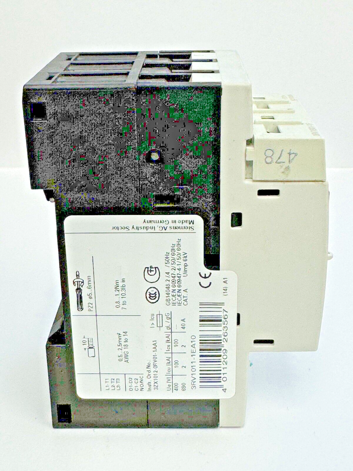 SIEMENS - 3RV1011-1EA10 - MOTOR PROTECTOR CIRCUIT BREAKER & 3RV1901-1F AUX. CONT