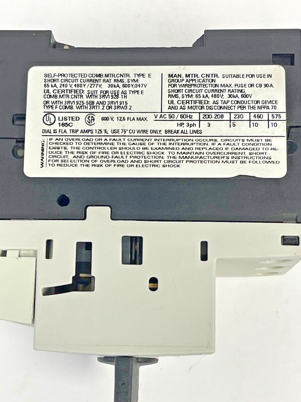 SIEMENS - 3RV1021-1KA10 & 3RV1901-1E - CIRCUIT BREAKER W/ SWITCH TRANSVERSE