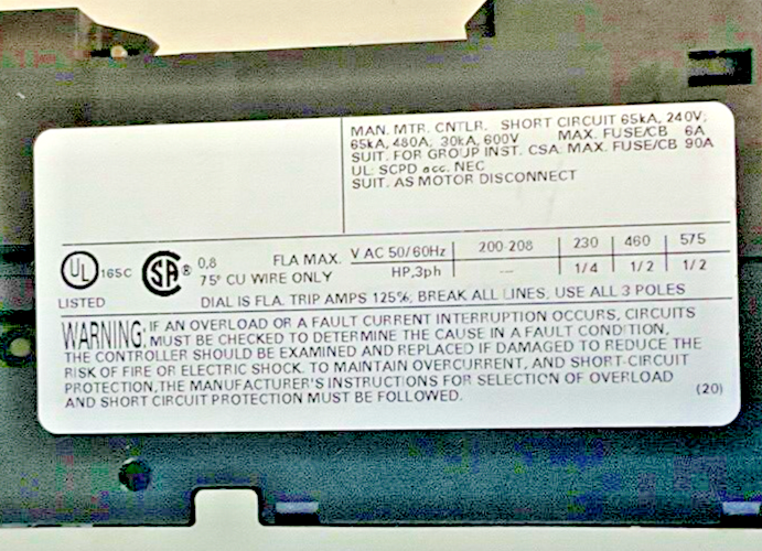 SIEMENS 3RV1421-0HA10 COMBINATION MOTOR CONTROL 0.55-0.8A