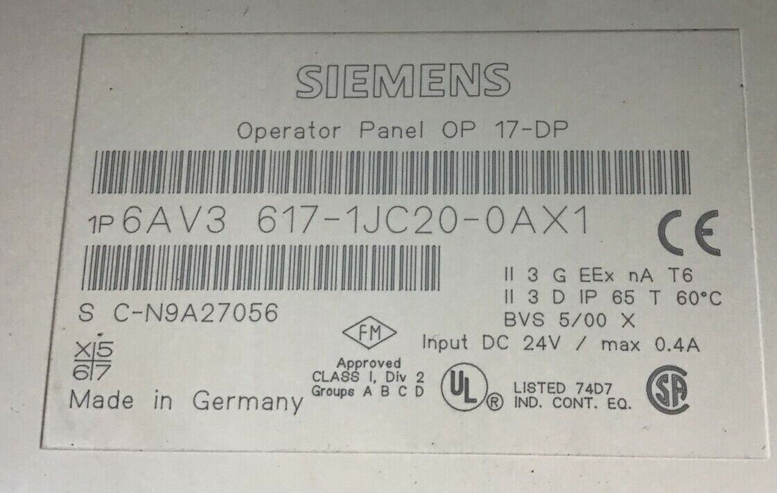 SIEMENS 6AV3 617-1JC20-0AX1 OPERATOR PANEL 24V