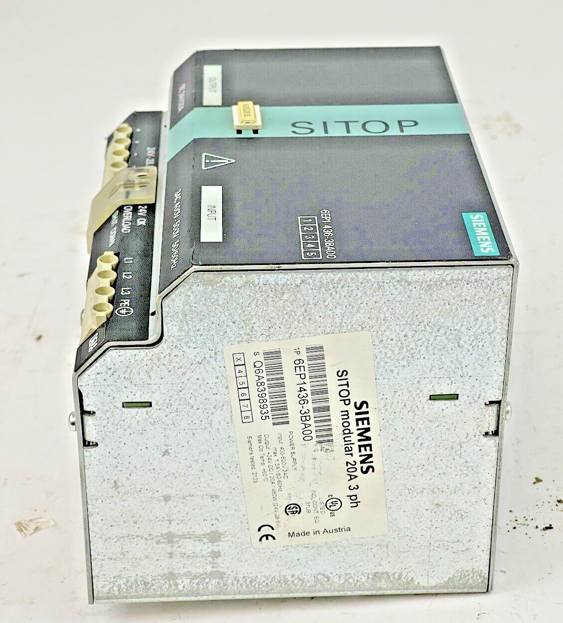 SIEMENS - 6EP1436-3BA00 - SITOP POWER SUPPLY - DC 24V/ 20A - 3AC 400V-500V