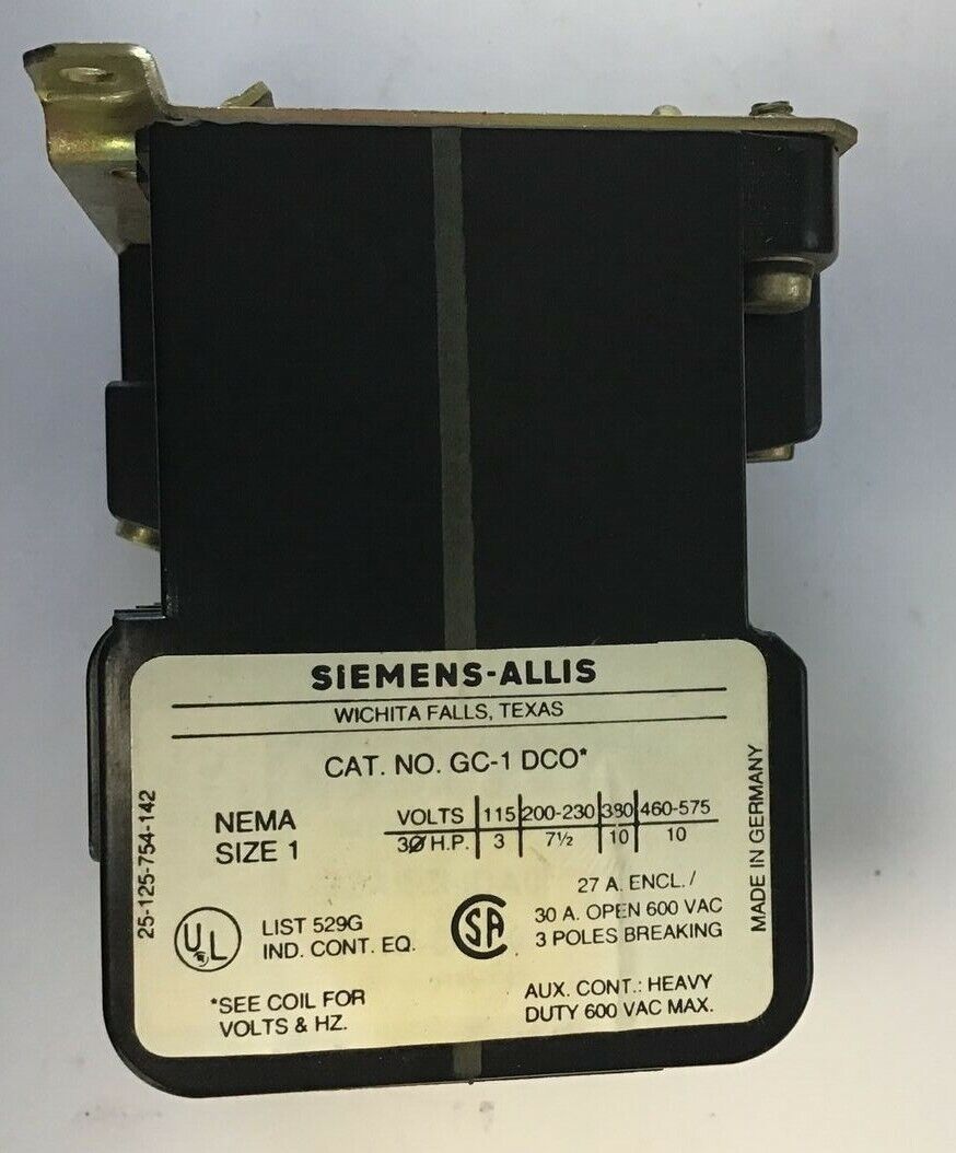 SIEMENS-ALLIS GC-1 DC0 RELAY 460-575V 10H.P 600VAC MAX
