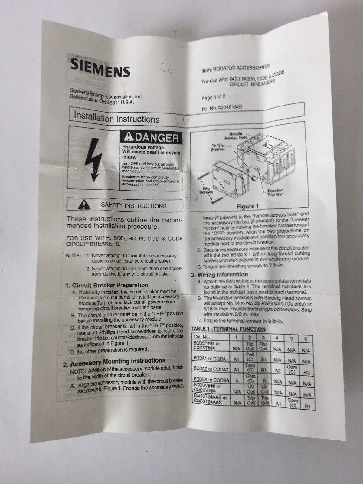 SIEMENS CQDA1 AUXILIARY SWITCH 250 VDC 60HZ 15 AMP (LOT OF 10)