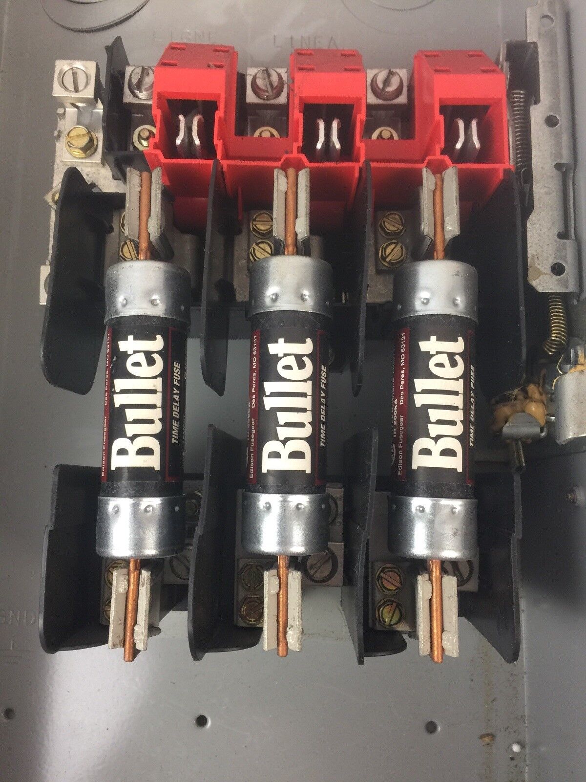 SIEMENS GF323N GENERAL DUTY FUSIBLE SAFETY SWITCH 100A 240VAC 250VDC W/ 3 BULLET ECNR100 TIME DELAY FUSE 100A