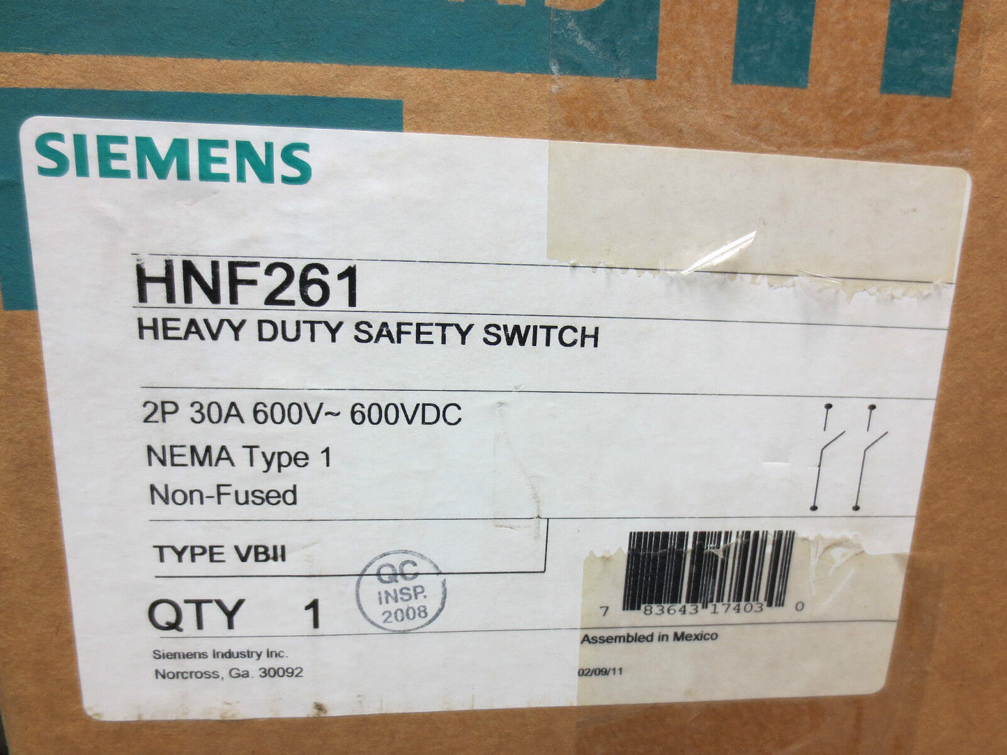 SIEMENS INDOOR SAFETY SWITCH NON-FUSIBLE, HEAVY DUTY