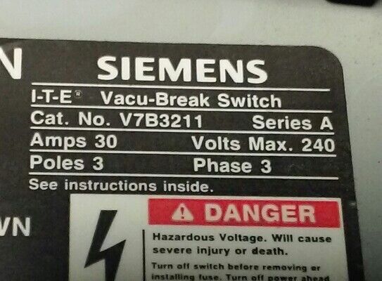 SIEMENS /ITE V7B3211 SER.A FUSIBLE TWIN VACU BREAK PANELBOARD SWITCH 3P 240V 30A
