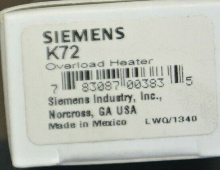 SIEMENS K72 THERMAL OVERLOAD HEATER ELEMENT