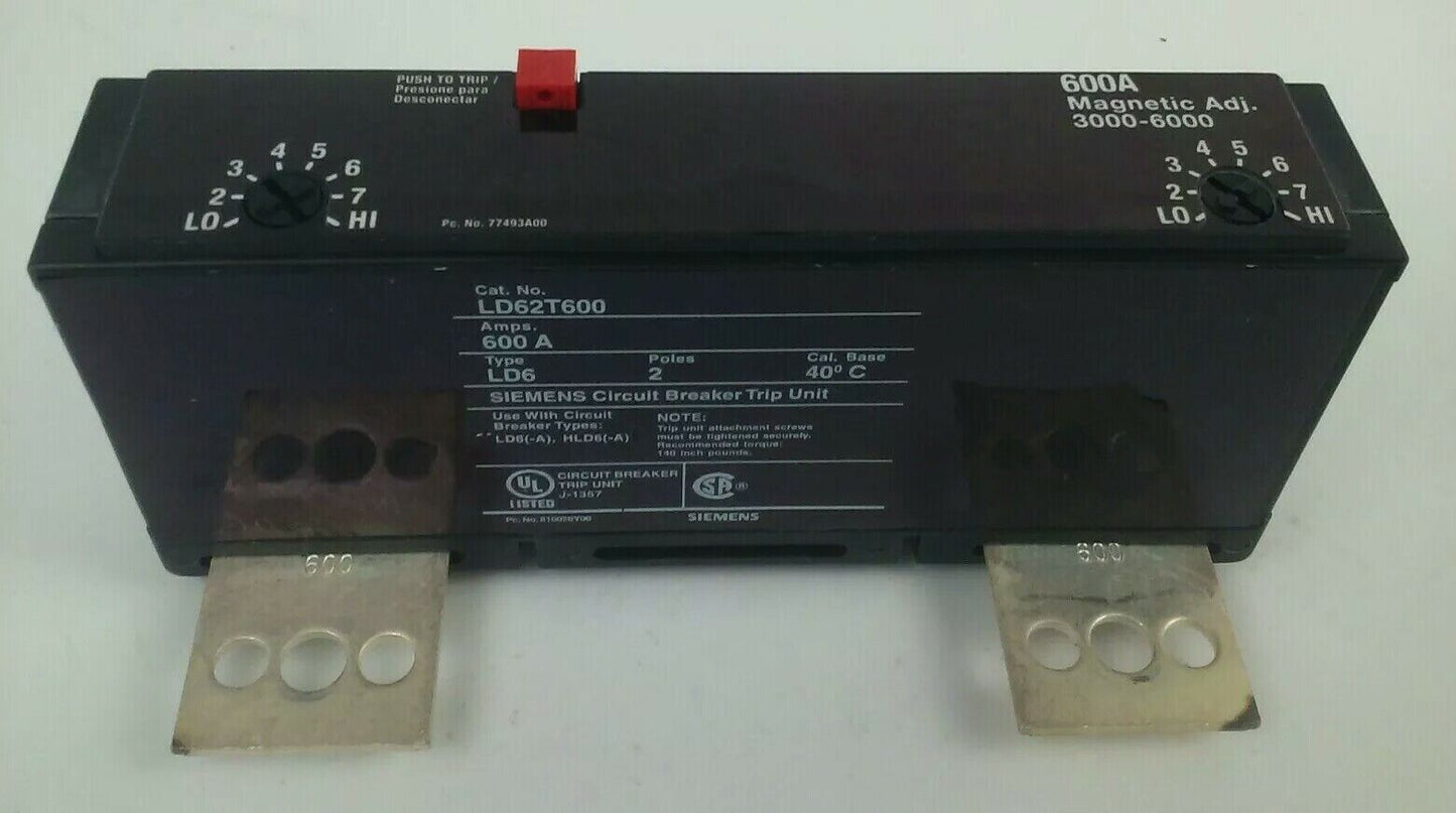 SIEMENS LD62T600 SENTRON MCCB TRIP UNIT ONLY 2P 600A 600V FRAME LD TYPE LD6