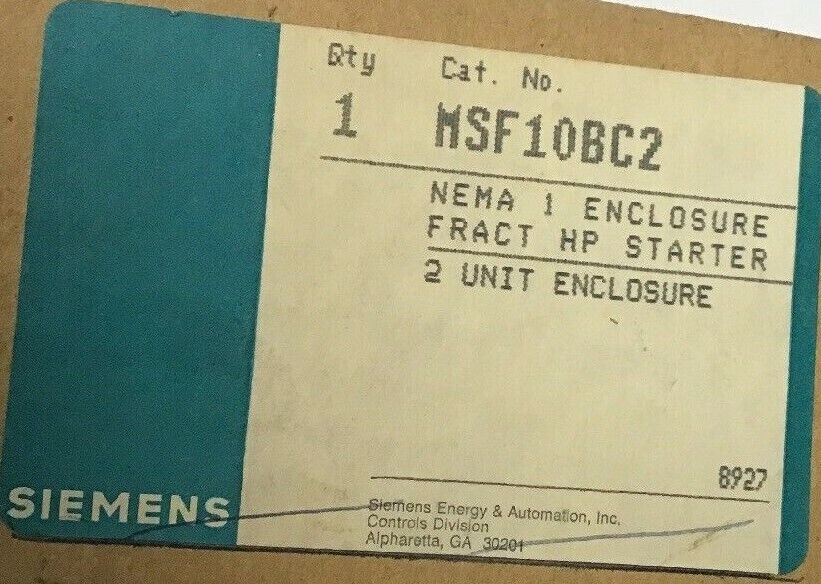 SIEMENS MSF10BC2 FRACTIONAL HP MANUAL STARTER 2 UNIT ENCLOSURE
