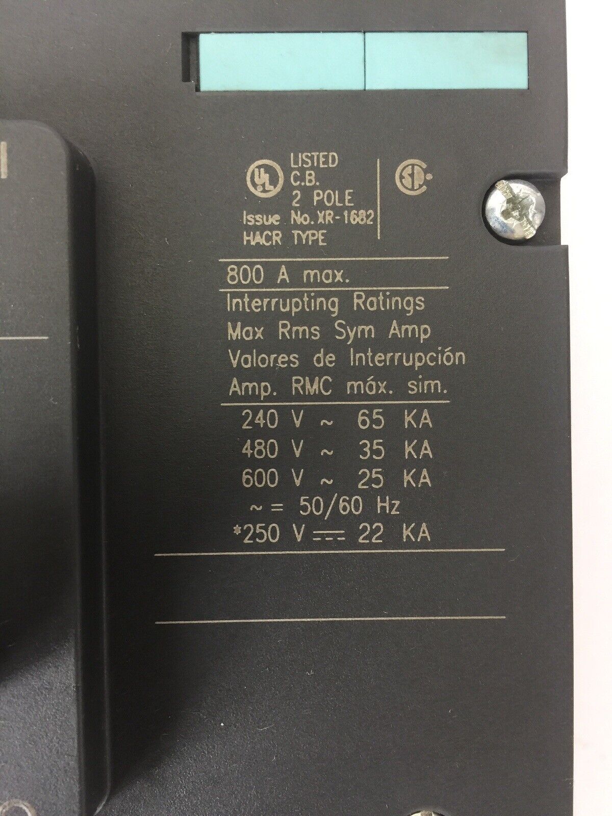 SIEMENS NMX2B800 CIRCUIT BREAKER 800A 250VDC 600VAC FRAME-MG 2POLE 3250-6500A TRIP