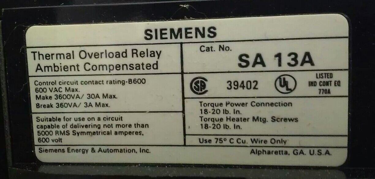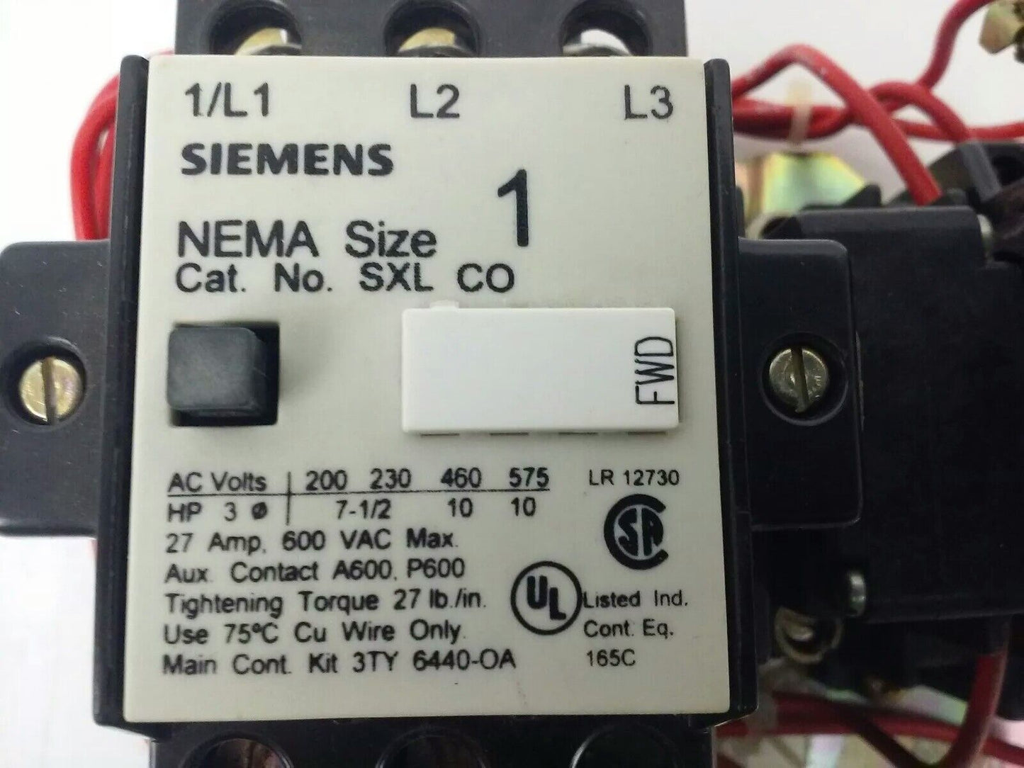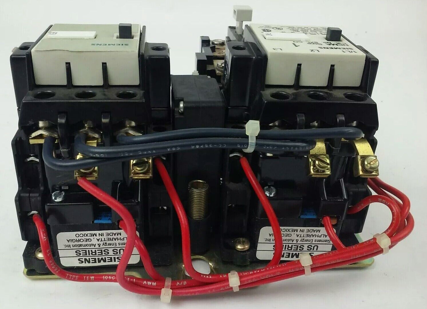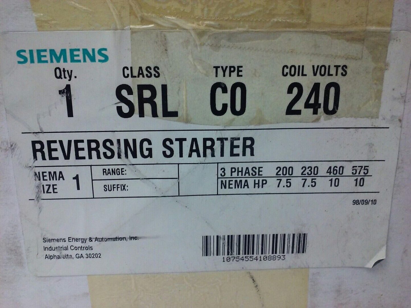 SIEMENS SRLCO240 REVERSING STARTER, SXLCO, 3PH, 27A, 600V, 10HP, 240V COIL, NEMA SIZE 1, W/ SA13A THERMAL OVERLOAD RELAY , NEW SURPLUS, CONTACTS NEVER USED!!!(REFERENCE PHOTOS)