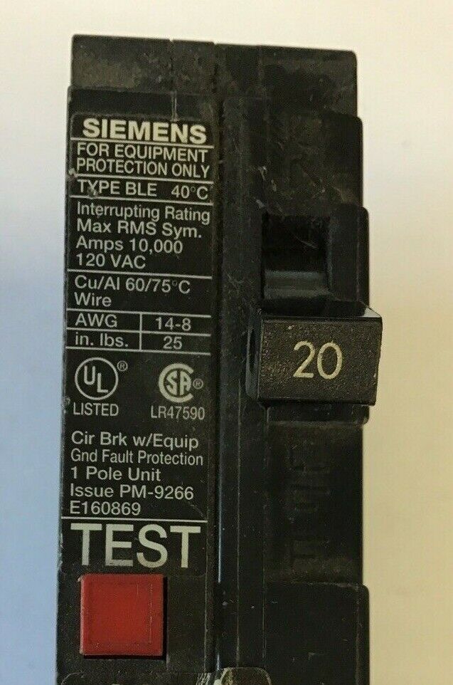 SIEMENS TYPE BLE 20A CIRCUIT BREAKER 120VAC