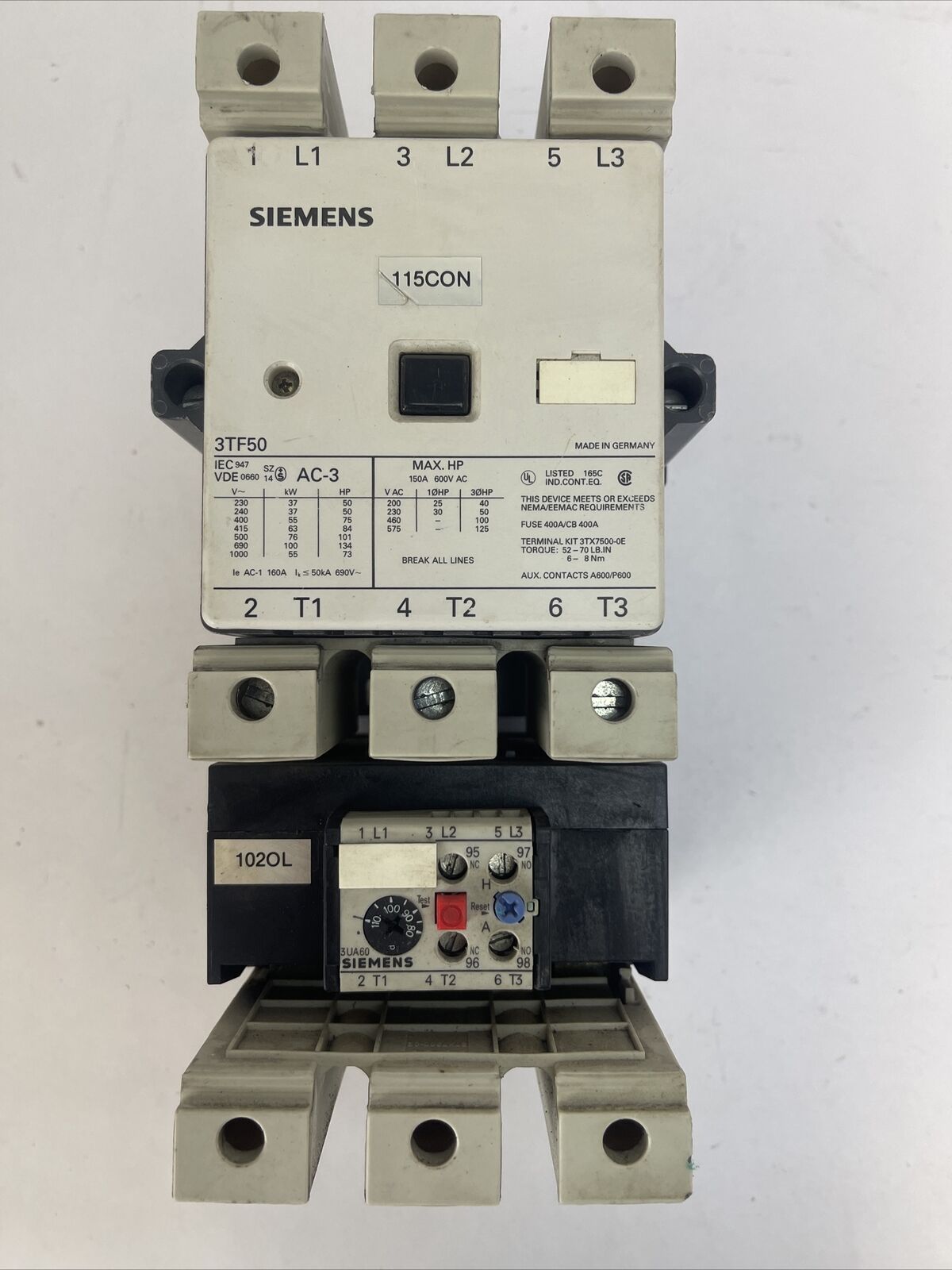 SIMENS STARTER (3TF50 CONTACTOR 150A 600VAC 125HP 3UA60 RELAY 80-110A)