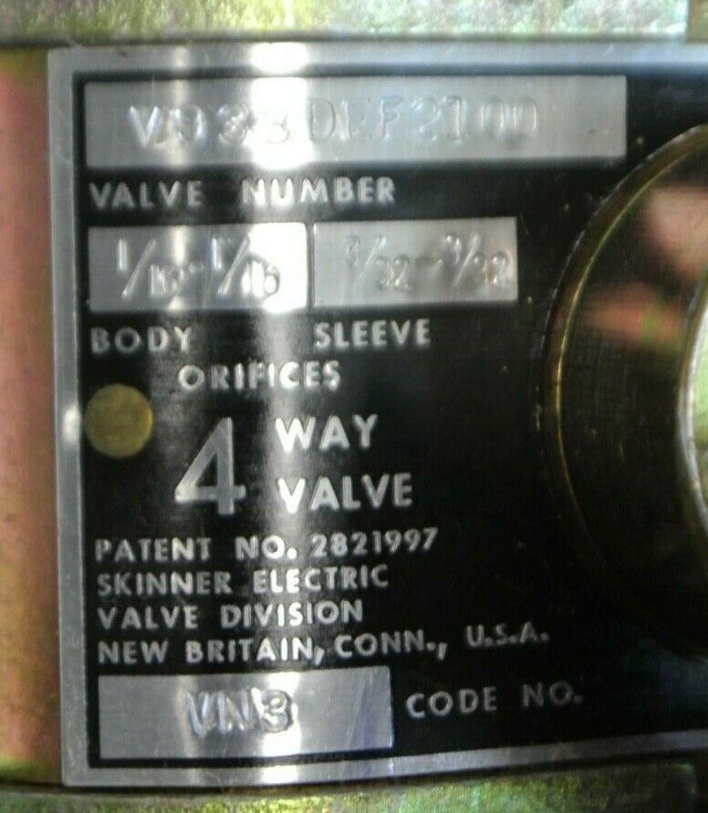 SKINNER V933DEF2100 V9-SERIES 4-WAY SOLENOID VALVE / 120V, 60Hz / NEW SURPLUS