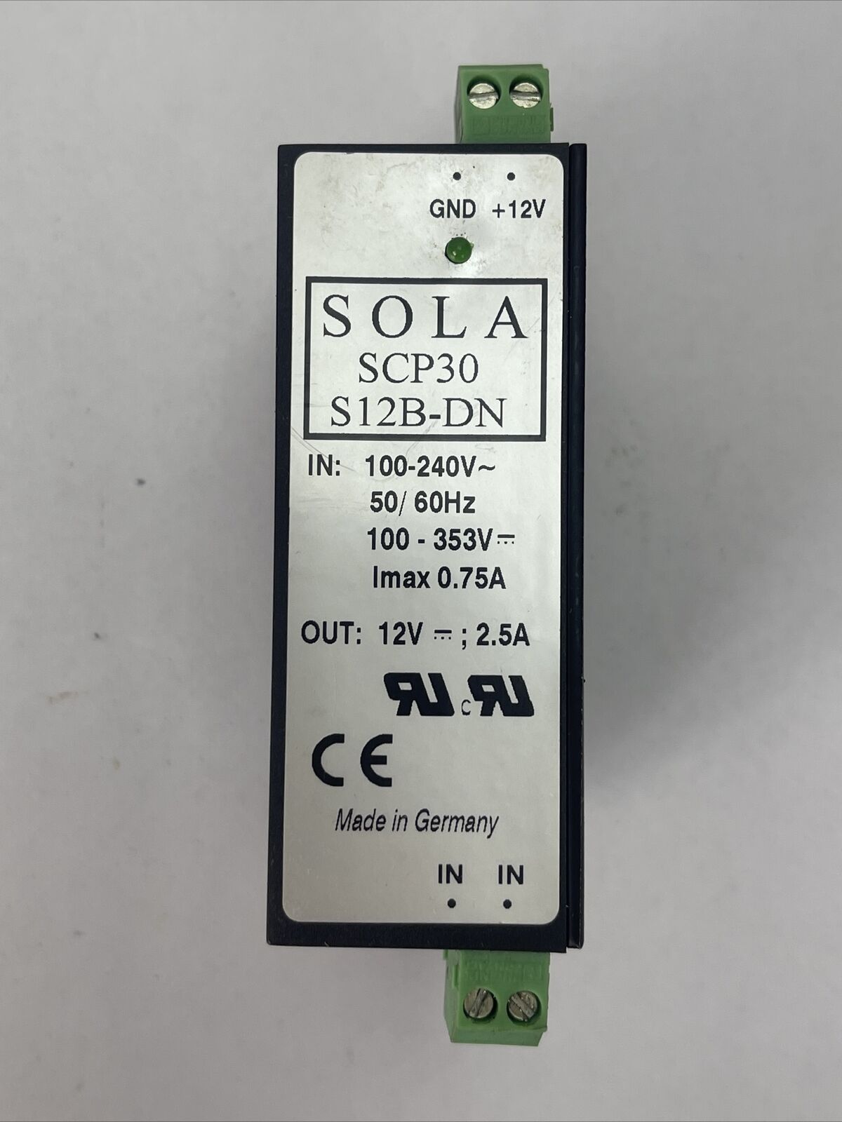 SOLA SCP30 S12B-DN POWER SUPPLY OUT 12VDC 2.5A INPUT 100-240VAC 100-353VDC 0.75A