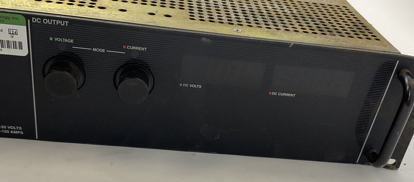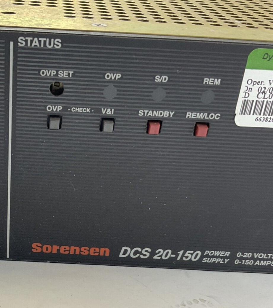 SORENSEN DCS 20-150 PROGRAMMABLE POWER SUPPLY 0-20VOLTS 0-150AMPS 250VAC 47-63HZ