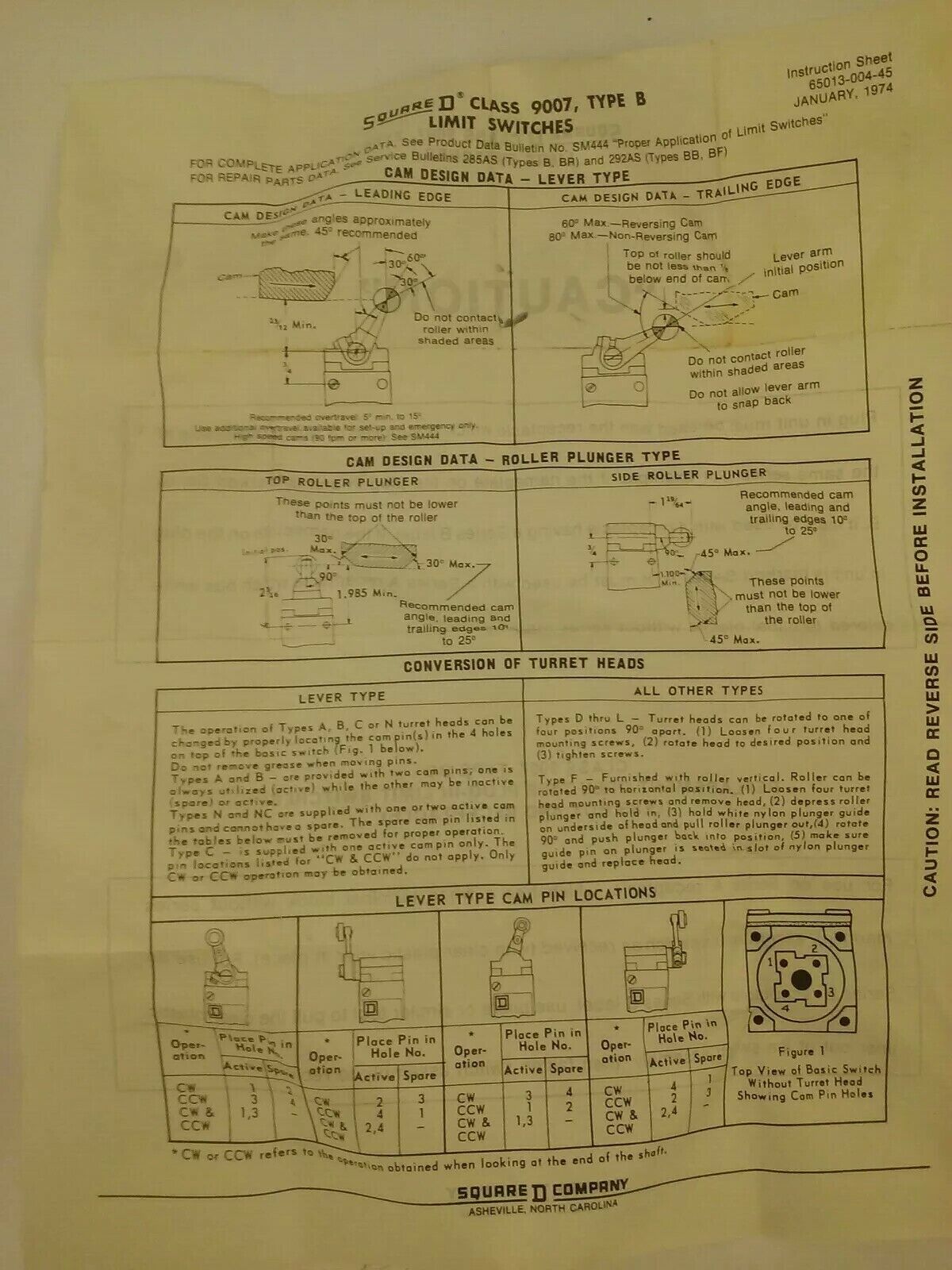 SQUARE D 31032-343-52 TOP ROLLER PLUNGER LIMIT SWITCH HEAD 3103234352