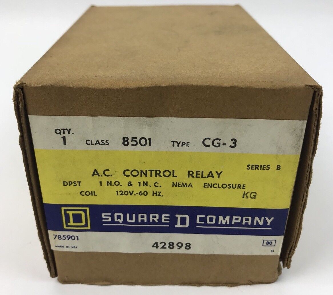 SQUARE D 8501 CG-3 A.C. CONTROL RELAY, SERIES B, 120V 60 HZ *NEW* *ORIGINAL BOX*