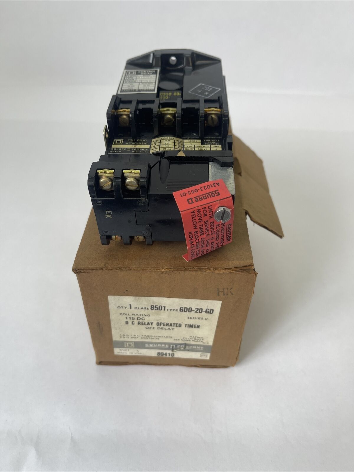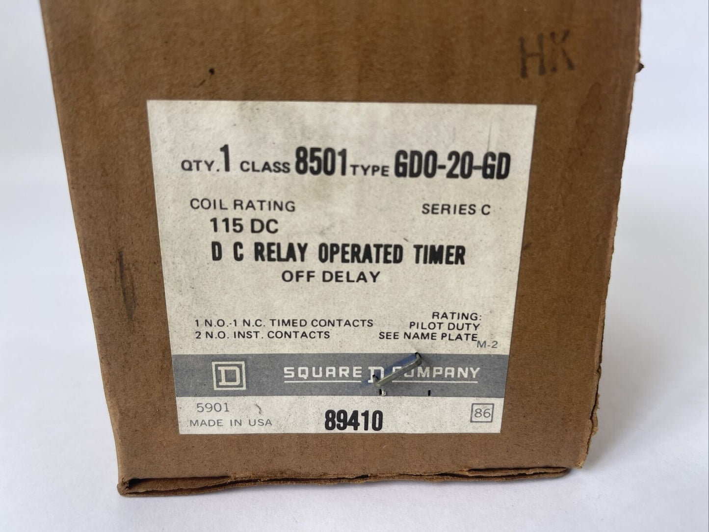 SQUARE D 8501 GD0-20-GD DC RELAY OPERATED TIMER 240VDC 132VA 5.5A COIL 115VDC
