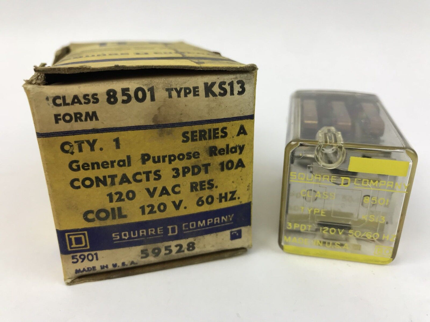 SQUARE D 8501 KS13 RELAY CONTACTS 3PDT 10A 120 VAC RES COIL 120V 60HZ *NEW*