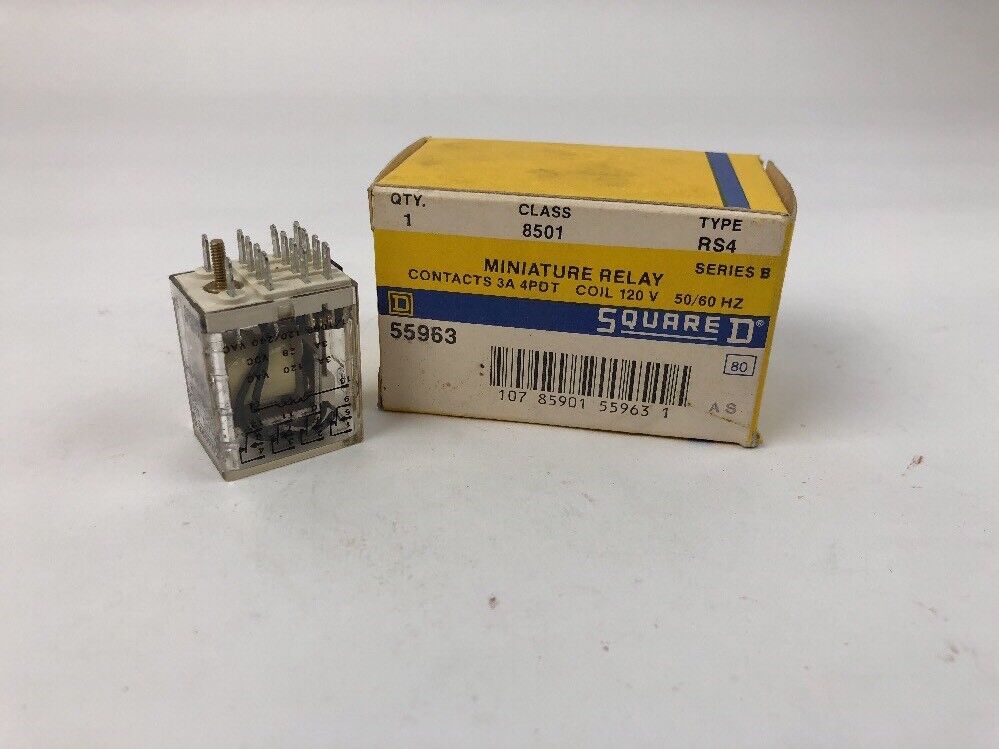 Square D 8501 RS4 Mew Miniature Relay Contacts 3A 4PDT Coil 120 V 50/60 HZ