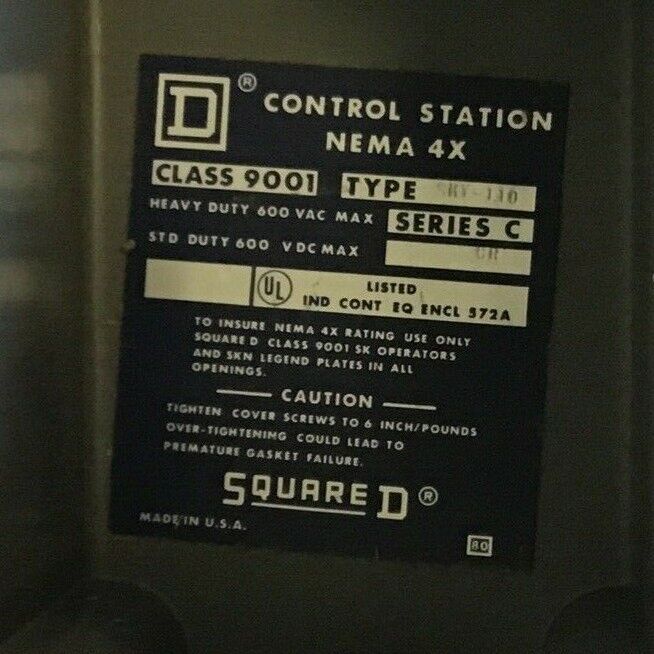 SQUARE D 9001 SKY-110 CONTROL STATION OFF/ON SWITCH ENCLOSURE SER.C 600VAC